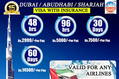 Dubai / Abu Dhabi / Sharjah Visa with Insurance. Valid for any Airlines.