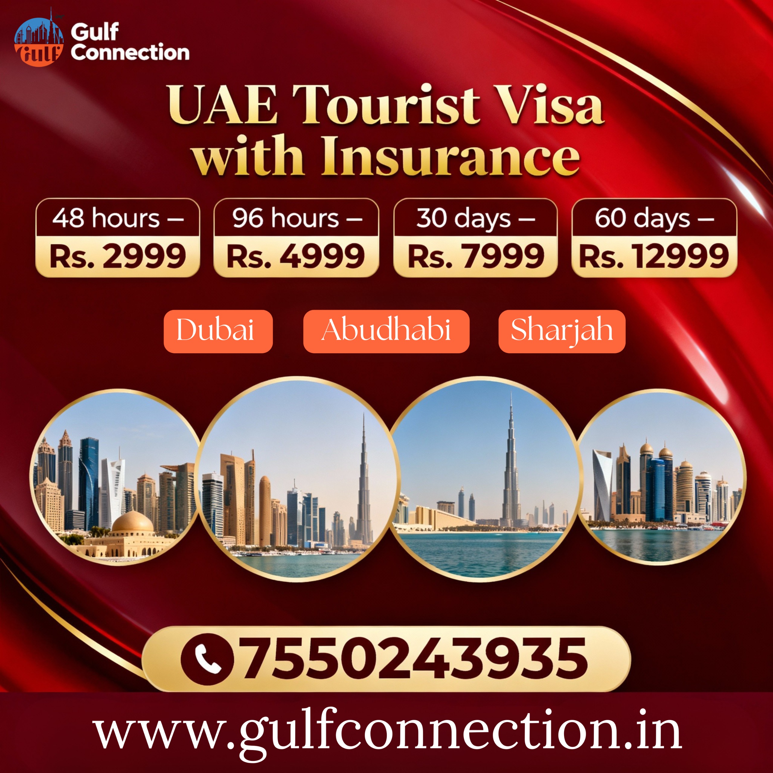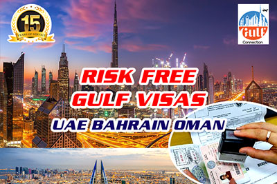 Risk free Gulf Visa (UAE, Bahrain and Oman) which includes Visa attestation and stamping.
